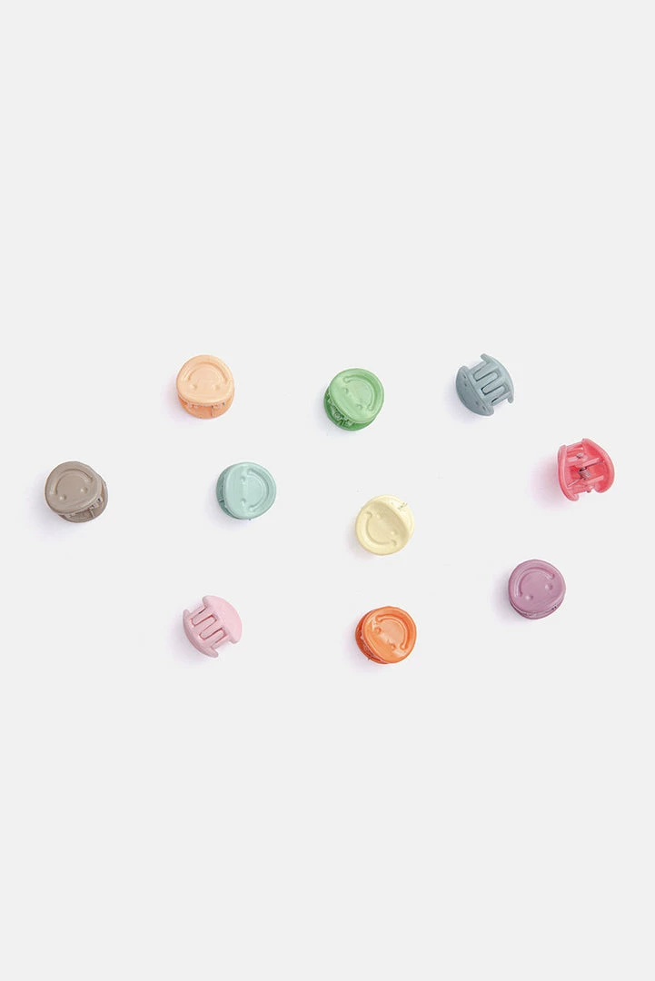 - Cuz youβre happy. Set of tinny hair clips in mixed colors and smiley design.