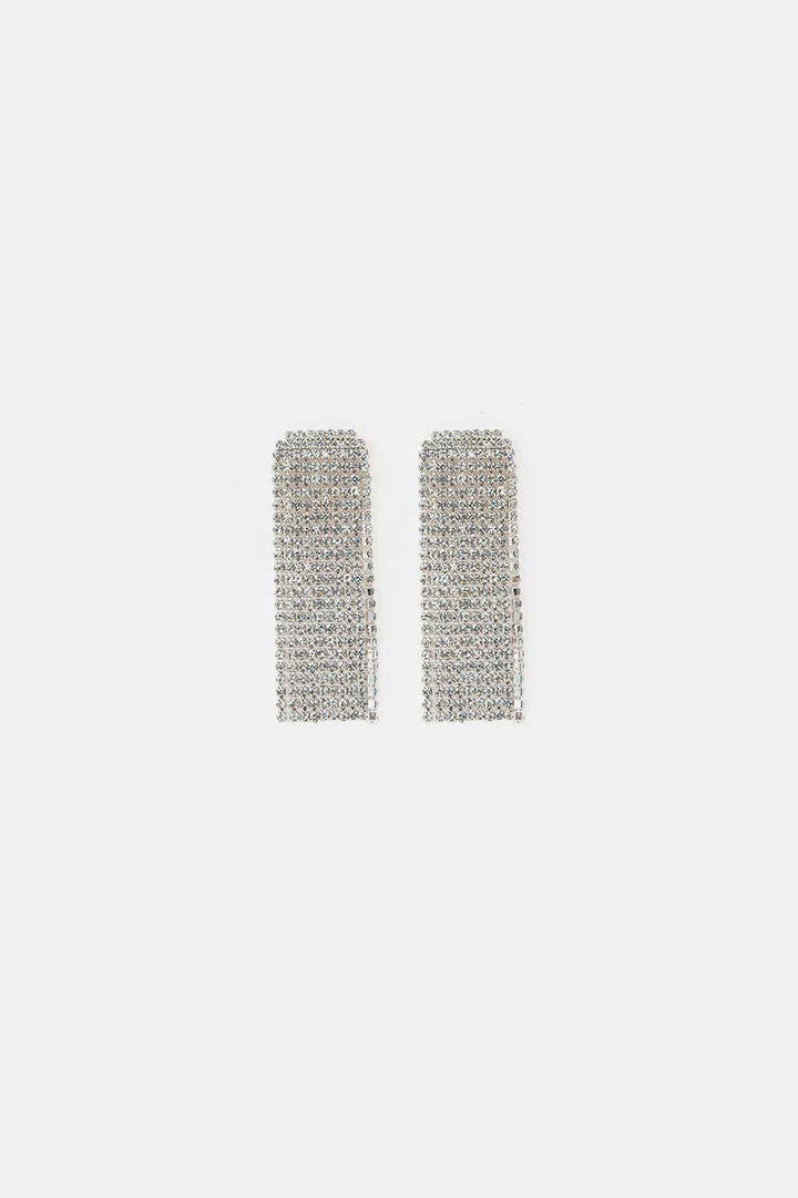 - Glam to the max. Dangle earrings featuring multi-fringe design with rhinestones and back stud closure.