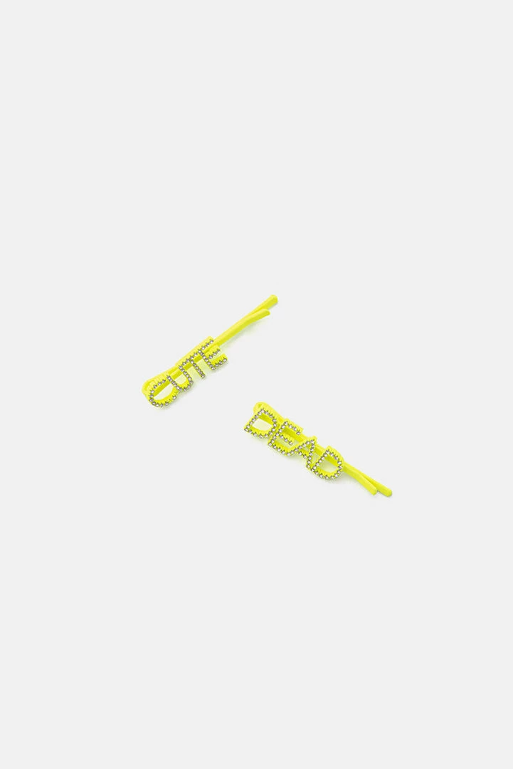 - Deadly cute. Set of 2 neon hair slides with rhinestones.