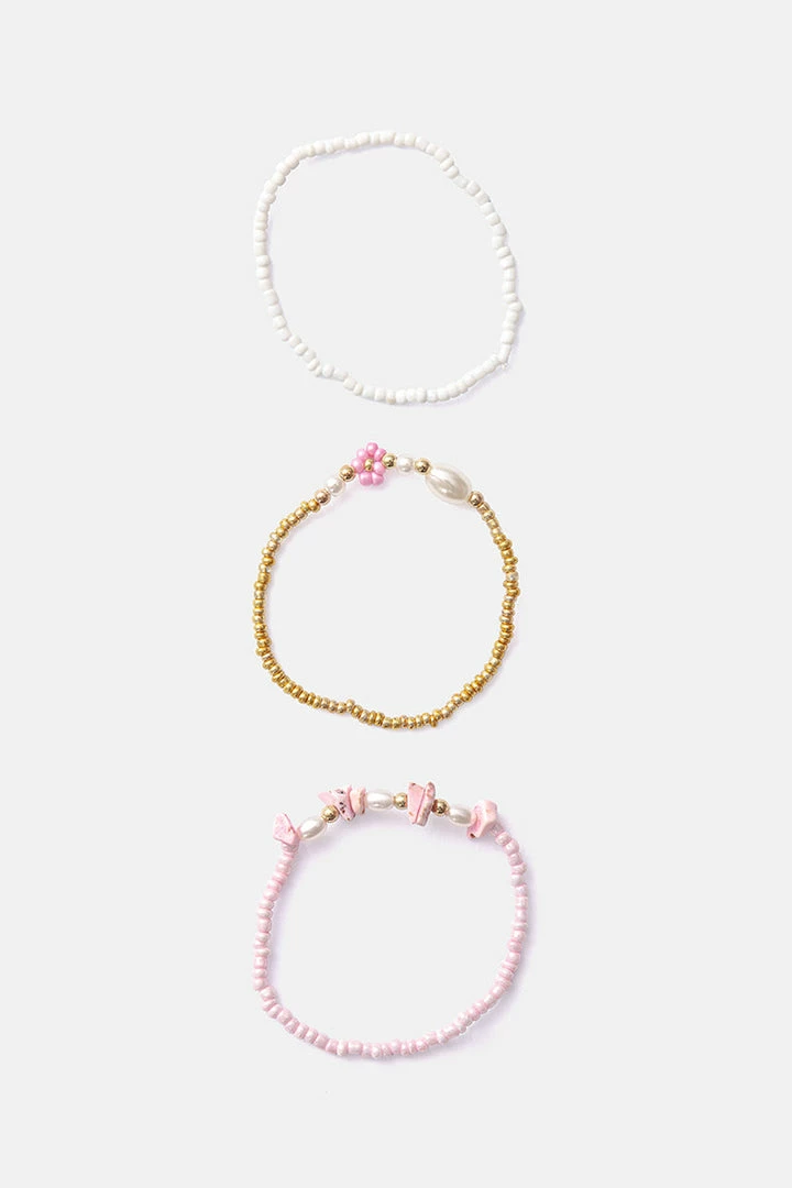 - All hands on. Set of stretchy mixed design beaded bracelets, perfect for stacking.