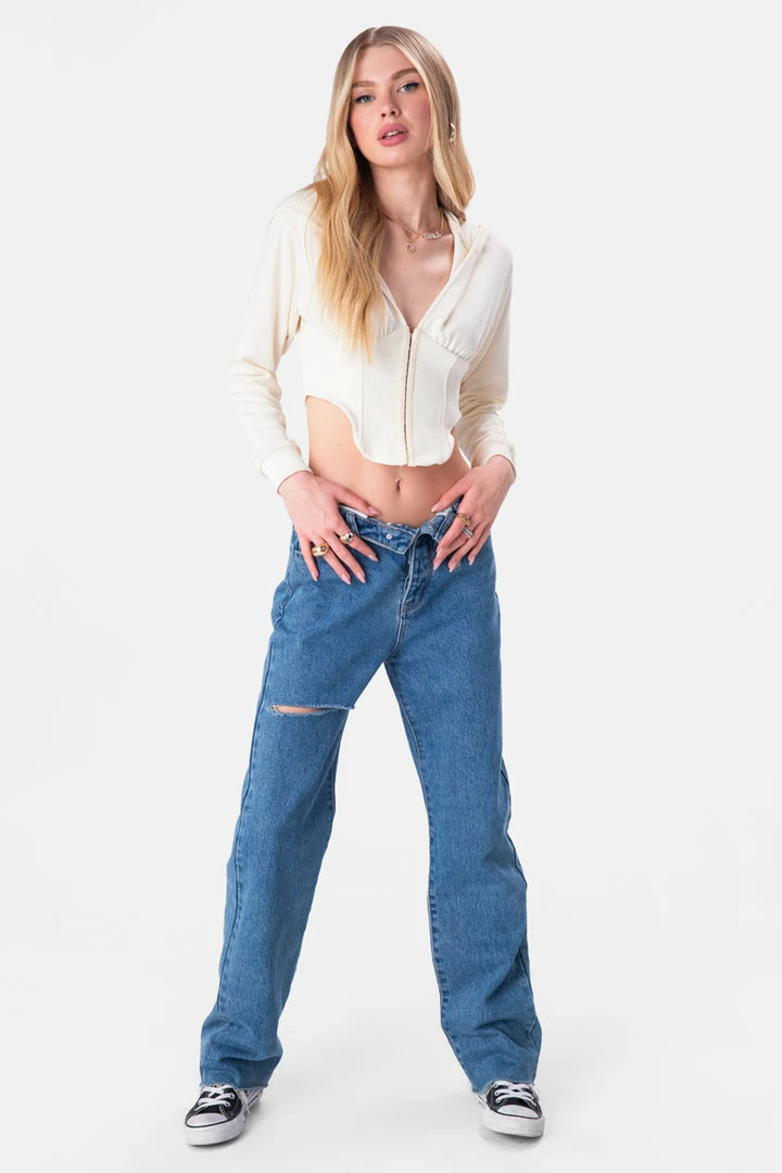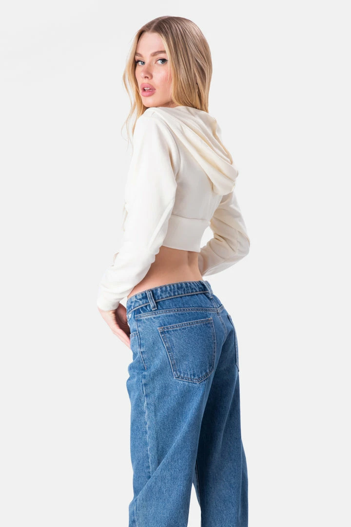- Cuz you’re the IT girl. Cropped jersey top with hood long sleeves with fitted ribbed cuffs and corset-style ribbed hem with a hook and eye closure.