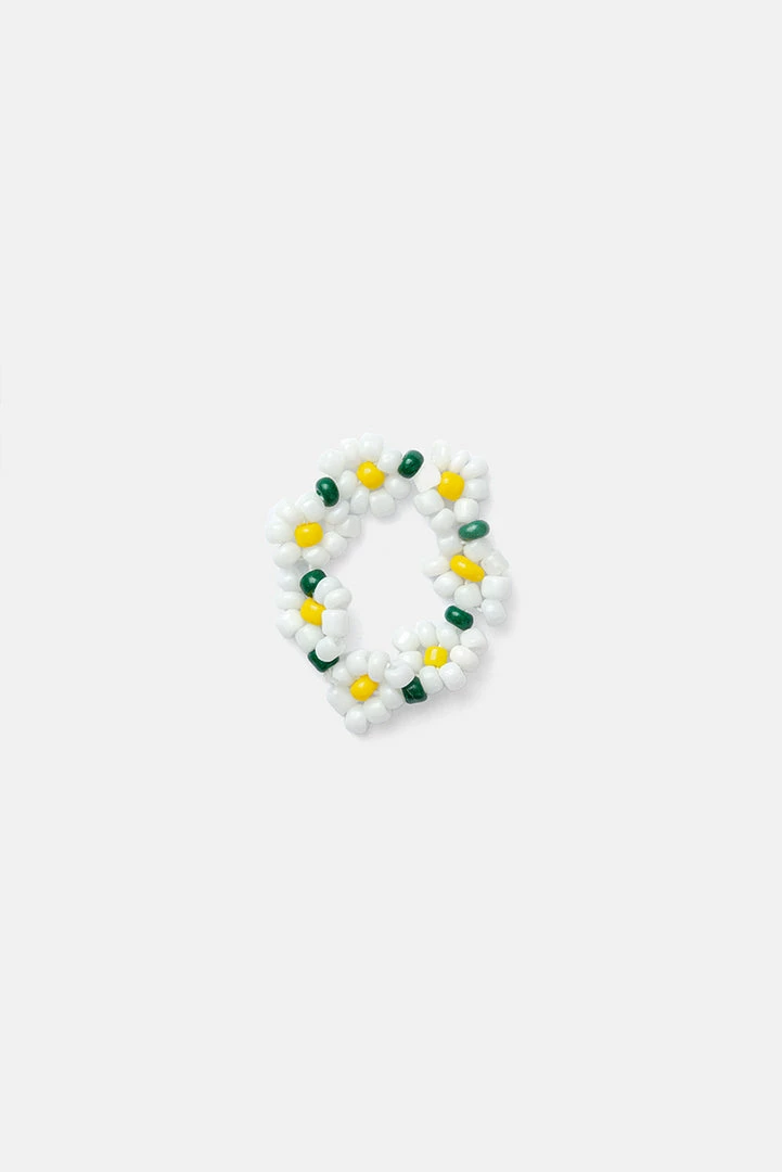 - Why are you so cute? Elastic ring in colorful beads and flower design.