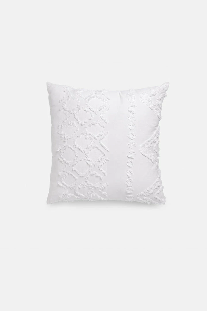 - Timeless elegance. Square throw pillow cover with fringed detail.
