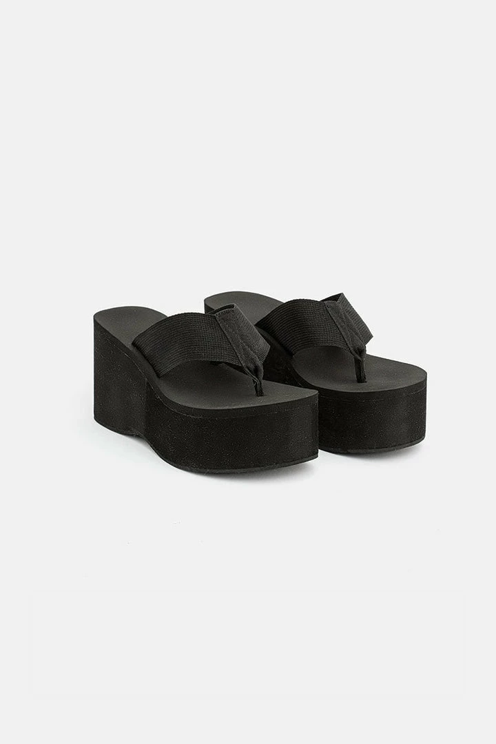 - Baby spice summer. Super chunky, platform sandals with flip flop straps and round toe.