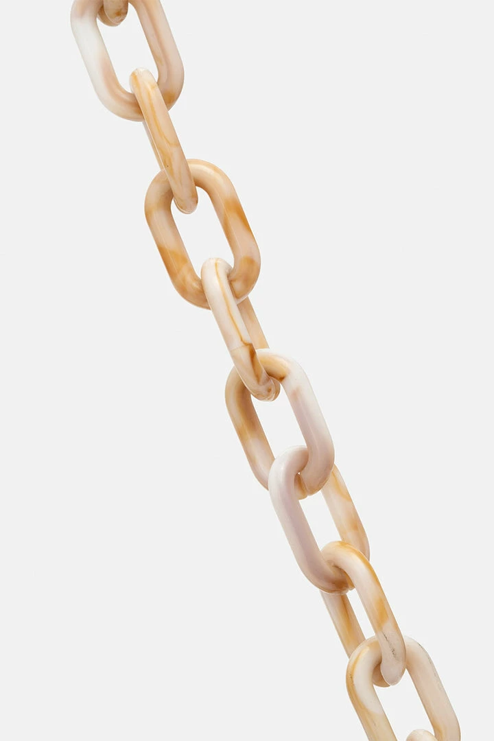 - Next level chic. Nylon shoulder bag featuring flap with a magnet closure and marble patterned chain-link strap.