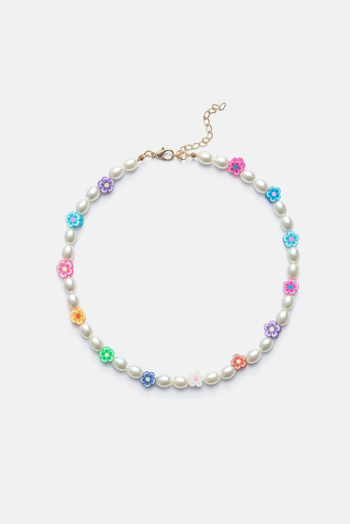 - One with the blooms. Colorful beaded necklace with a T-bar closure.