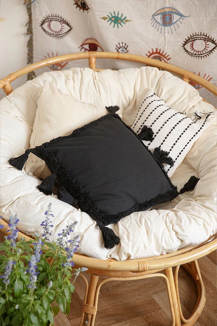 - The boho is so chic. Square pillow cover with a fringed frame and tassels outline.