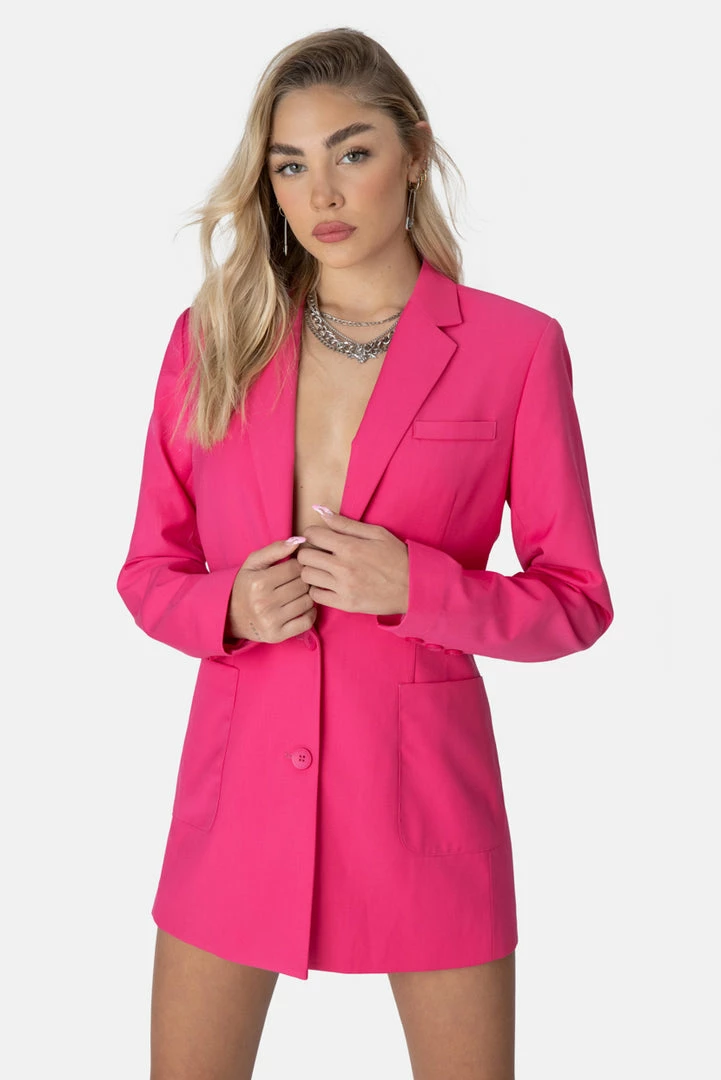 - Bossy and sassy: Tailored blazer in an oversized fit with notch lapels, button closure, chest faux-pocket, side patch pockets and an inner lining. Well suited, grl.