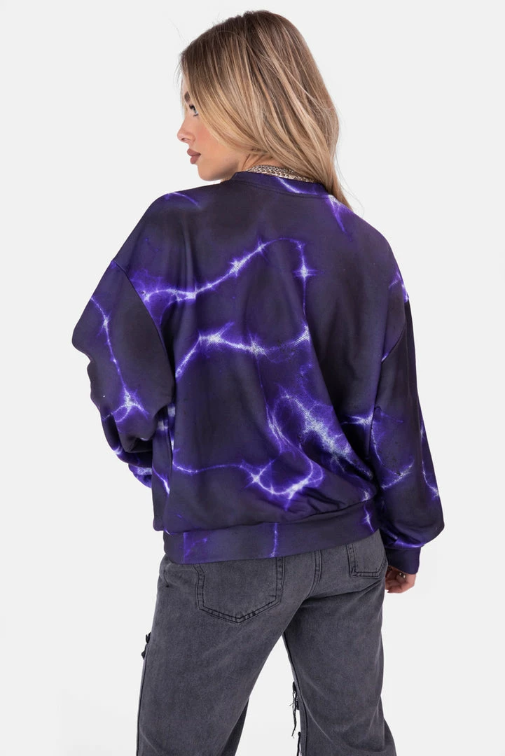 - You’re suplyin’, it’s electrifyin’. Relaxed fit sweatshirt in all-over graphic pattern with a graphic print on the front, dropped shoulder line, crewneck plus banded cuffs and hem. Lit.
