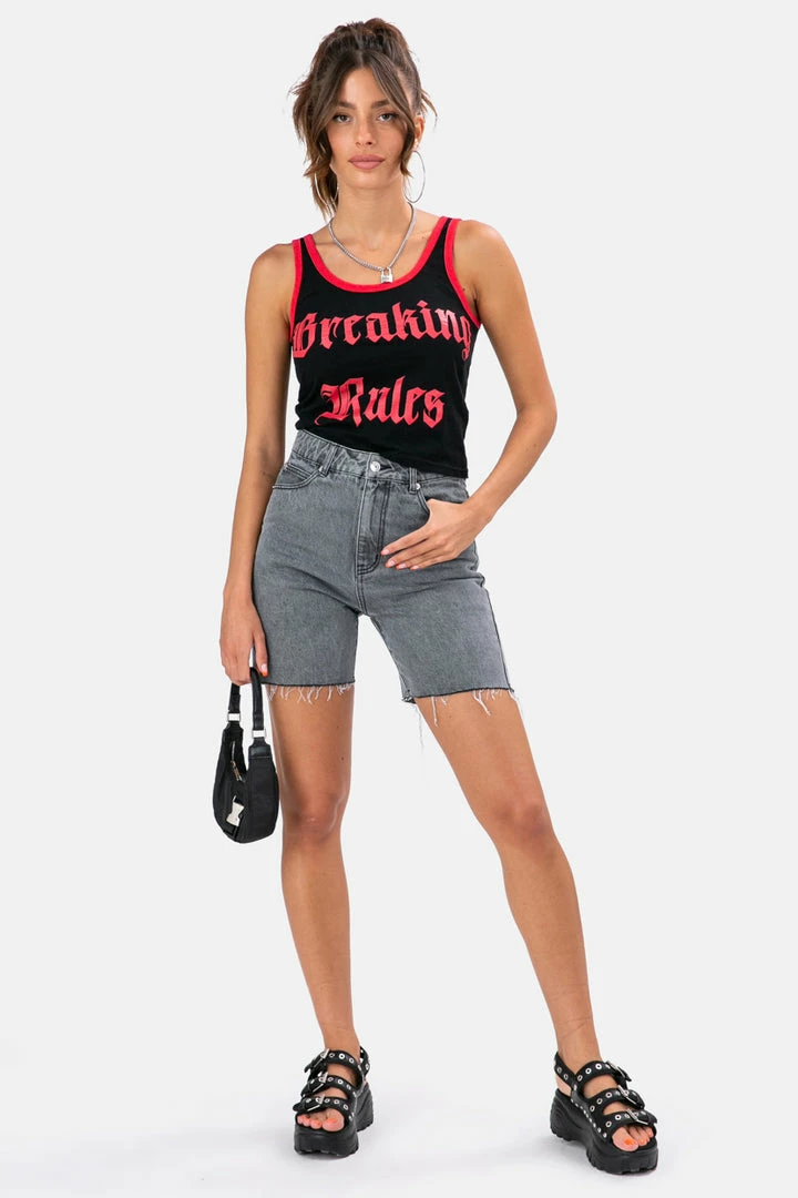- Breaking the rules is so girl boss. This fitted tank top comes with a U-neck, printed text on the front and contrasting seam detailing.
