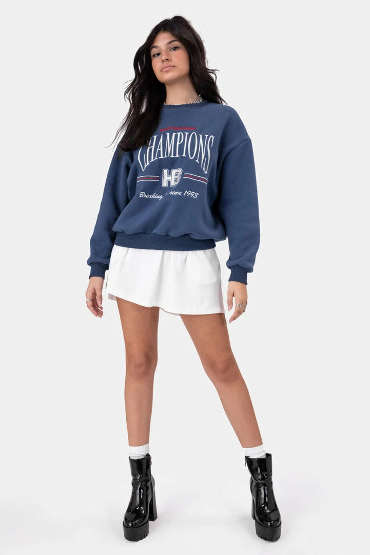 - And the no.1 award for the heartbreaker of the year goes to YOU. This mega-warm, college-style sweatshirt features an oversize fit, embroidery in the front and ribbed outline. Winning.