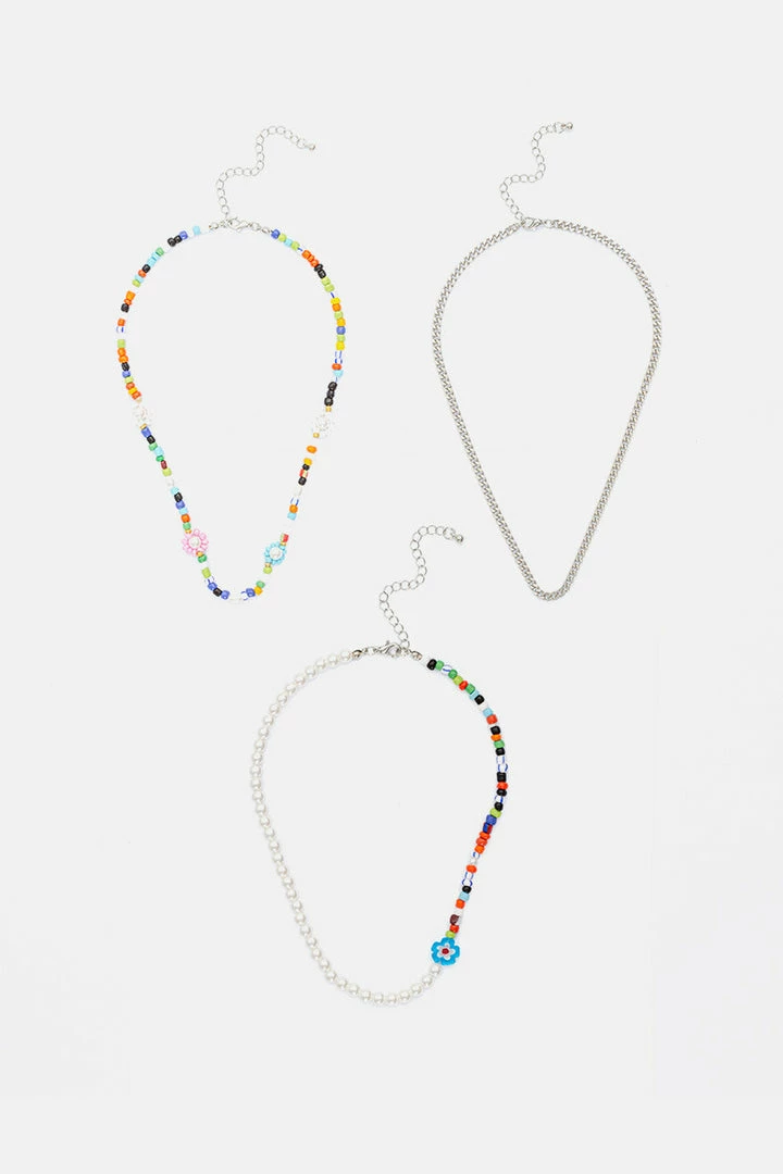 - Fun to the max. Set of 3 dainty necklaces in mixed design with adjustable closure.