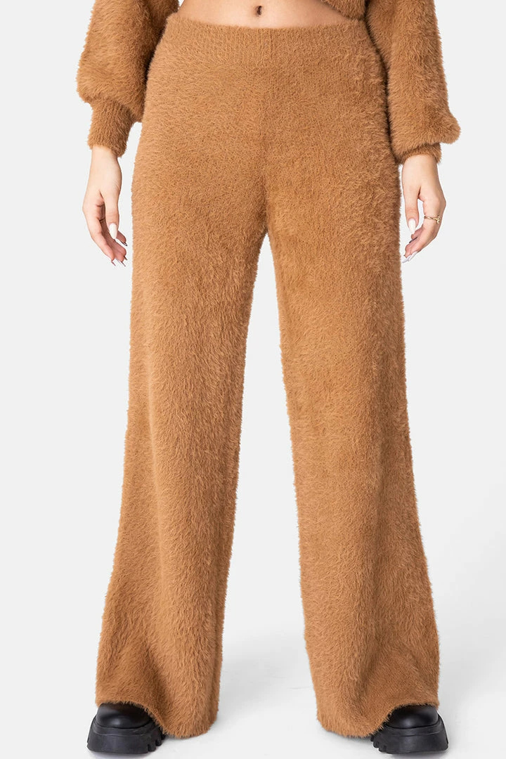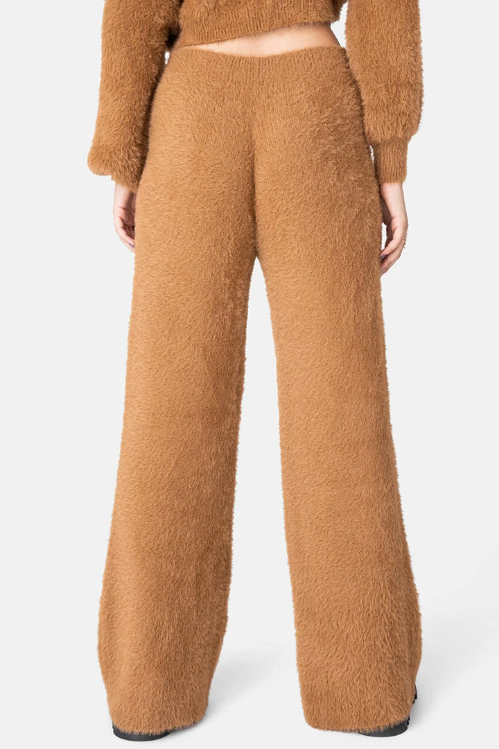 - I’m soft on the outside. These flared pants come in a fuzzy textured fabric with an elastic hem. Comfy and chic.