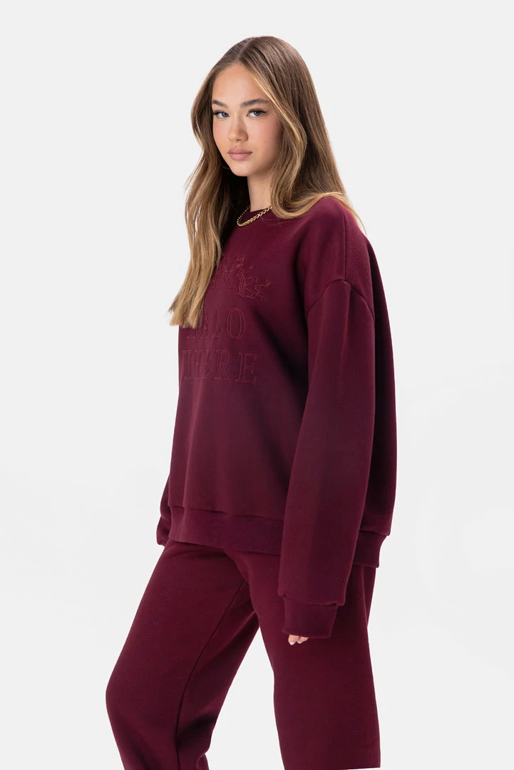 - Can I get a halo. Warm sweatshirt in a relaxed fit with embroidery in the front, dropped shoulder line, crewneck and ribbed outline.