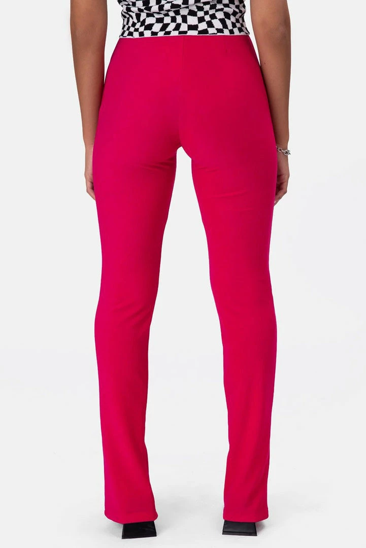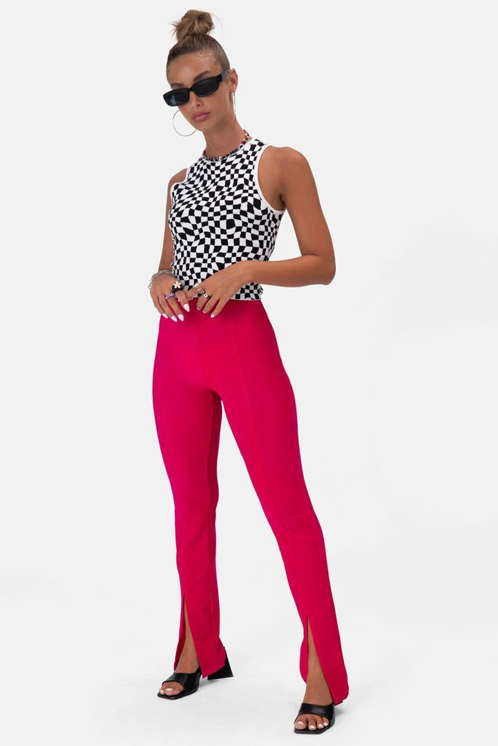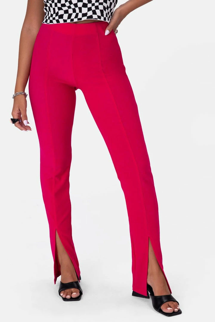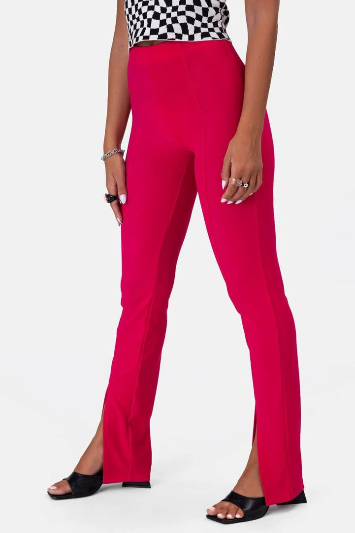- It’s the little slit for me. High waisted stretchy and fitted pants with an internal elastic waistband and super-chic slit detail in the front of each hem.