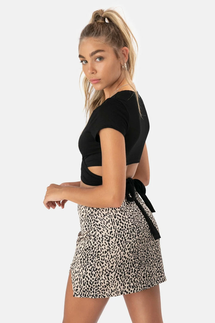 - V-neck cut-out crop top that ties in back