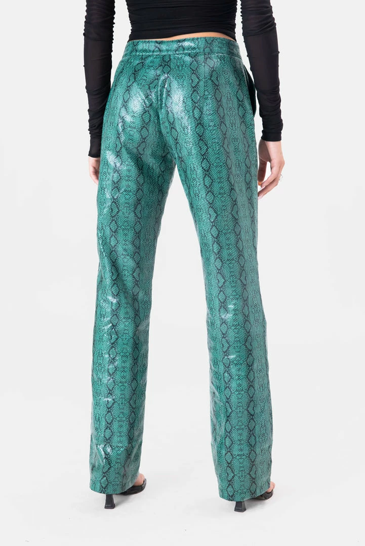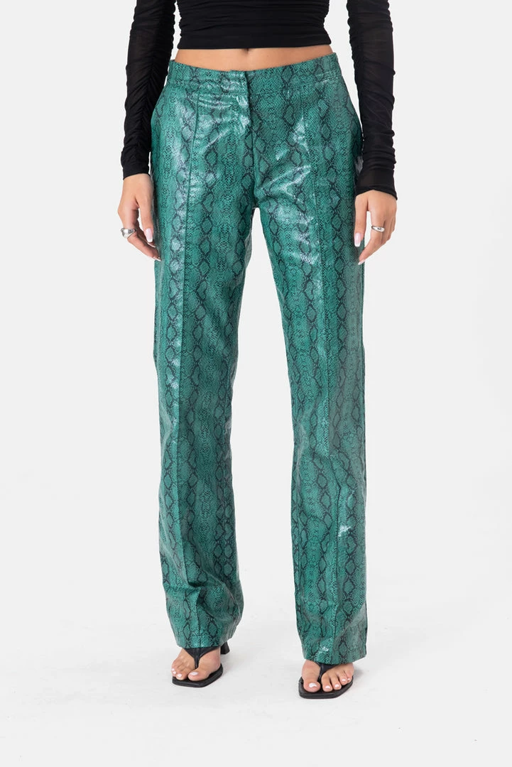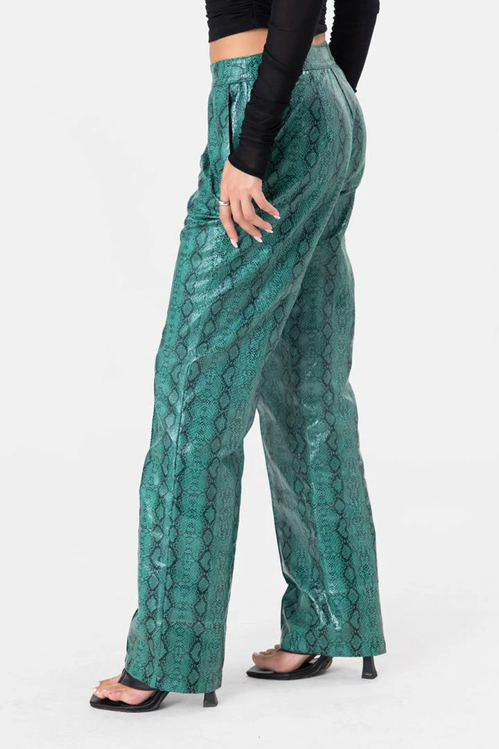 - It’s hiss-torically iconic. Wide faux leather pants in super chic snake pattern all-over featuring mid-rise fit, hidden hook and eye with zip closure, side inseam pockets and tonal seam detail in the front.