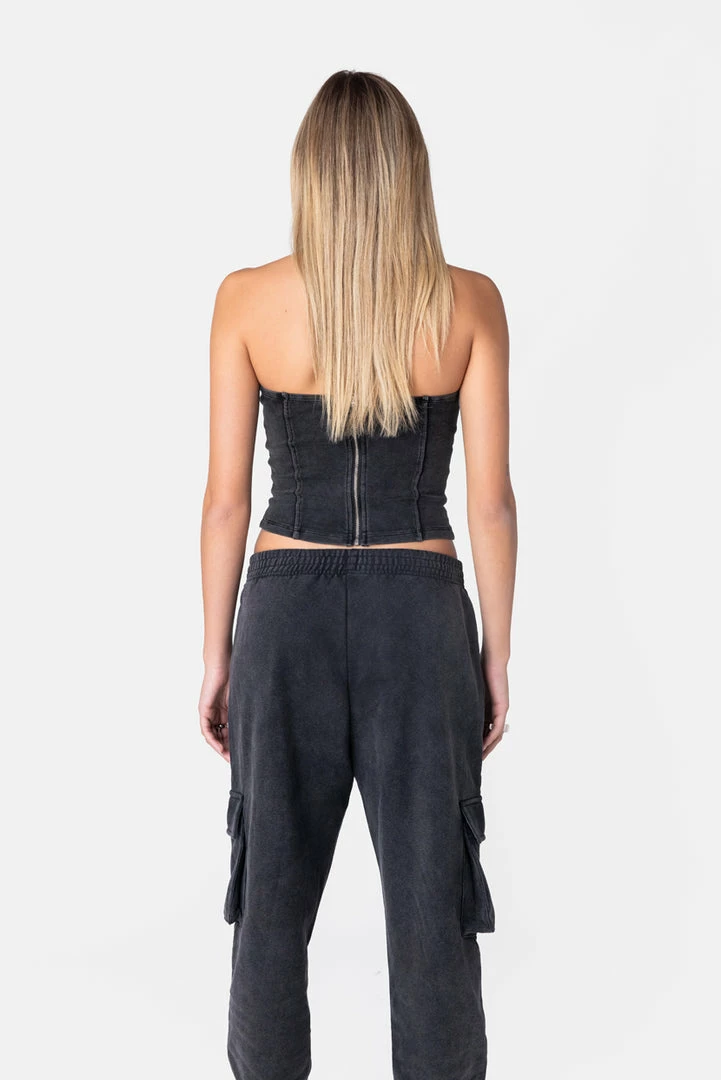 - It lines up perfectly. Corset top in washed out finish with back zip closure and tonal seam detail all over.