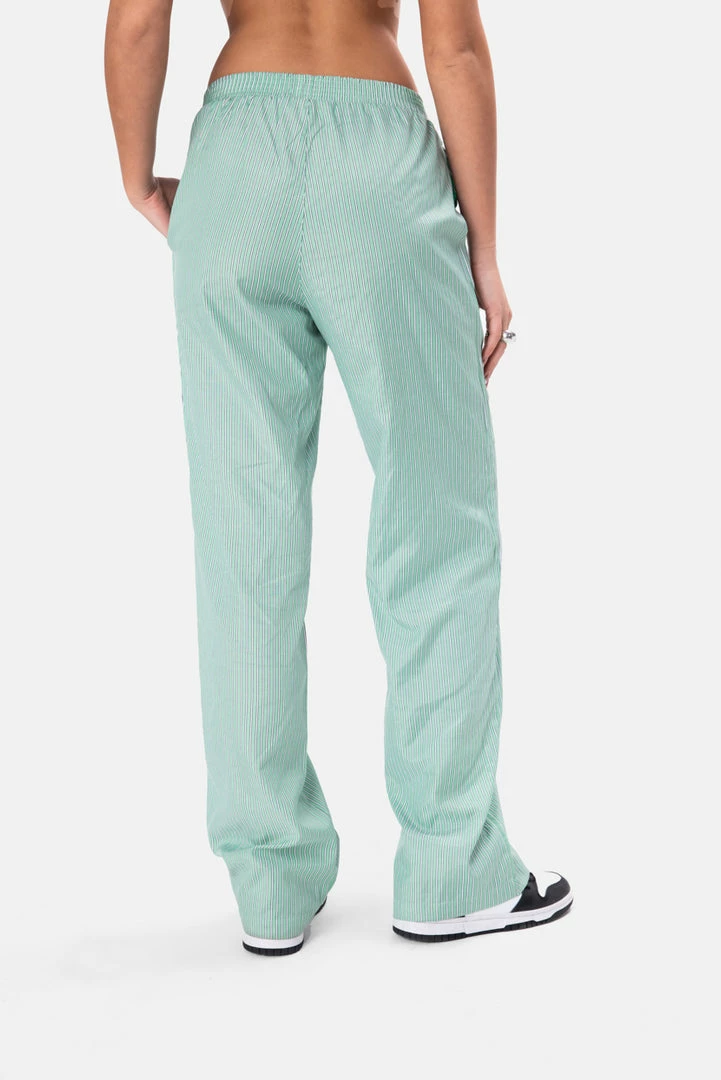 - Drop me a line. Lightweight, wide-fit pants in all-over pinstripe pattern with tinny patch detail on the front and an elastic waistband.