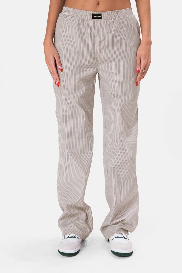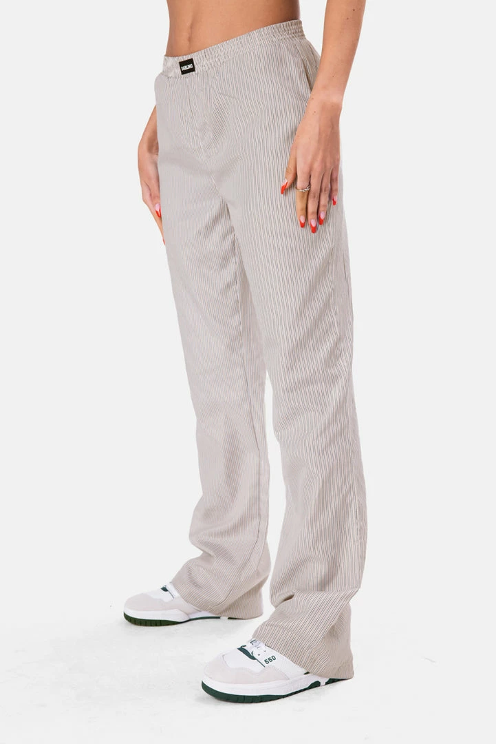 - Drop me a line. Lightweight, wide-fit pants in all-over pinstripe pattern with tinny patch detail on the front and an elastic waistband.