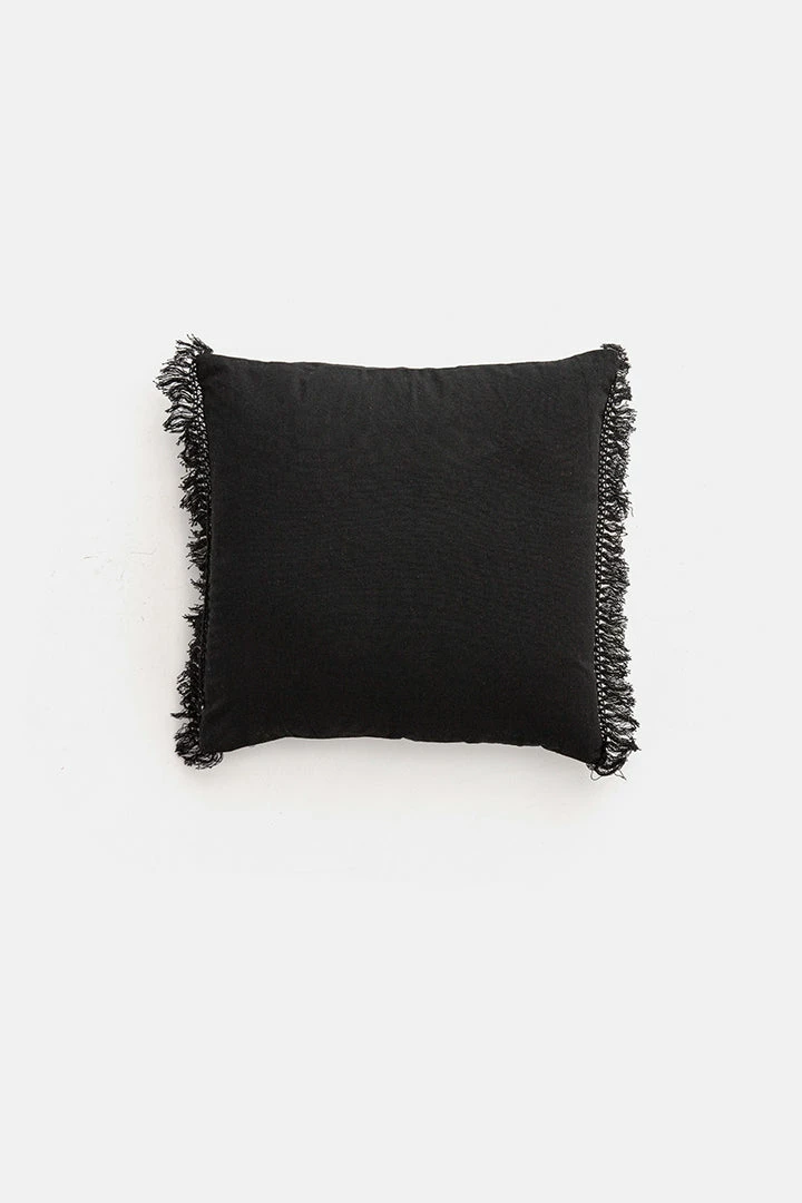 - Midnight chic. Square pillow cover with mega-fun fringed sides.