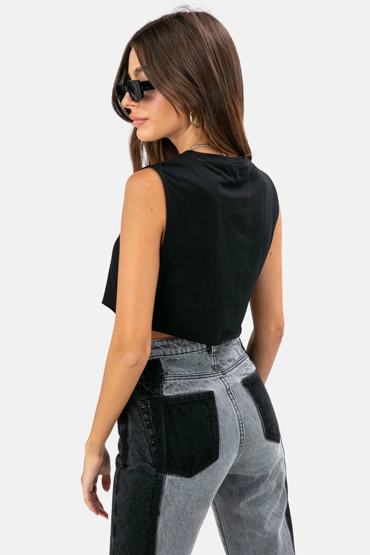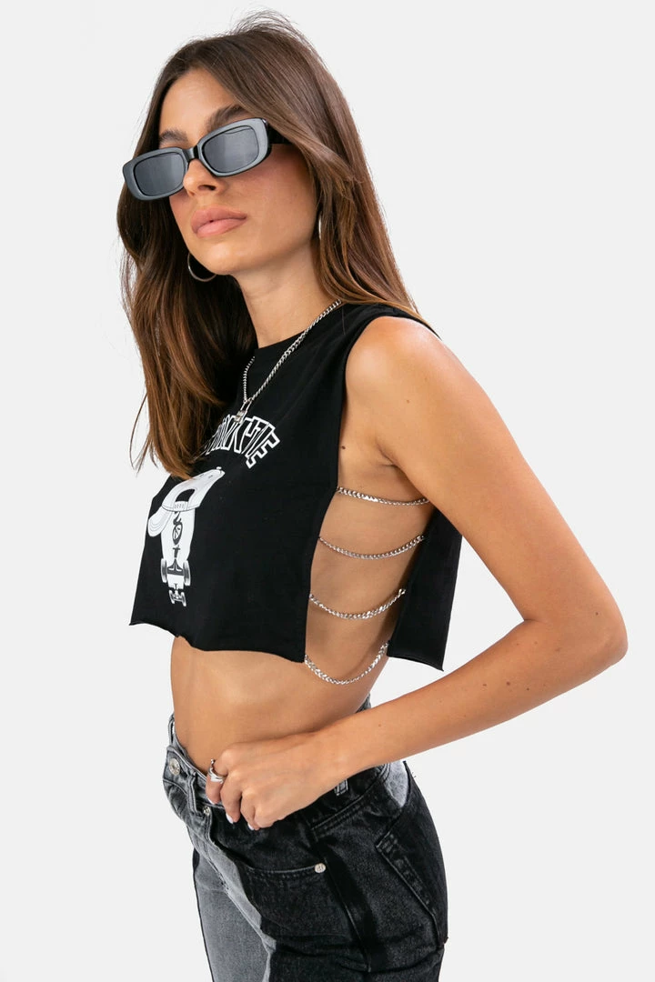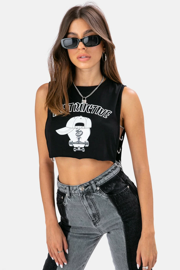 - This top is off the chain. Cropped tank top featuring super-chic chain detail at the sides, graphic print in the front and a raw-cut hem. Yaaas!