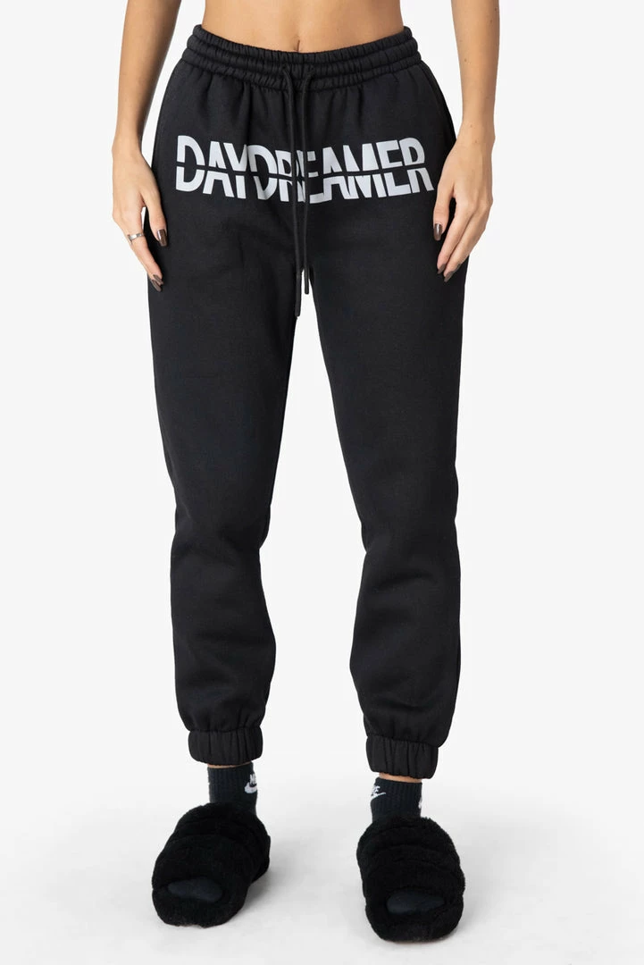 - Daydreamer for life. Jersey sweatpants featuring reflective printed text in the front, elastic waistband with drawstring, fitted cuffs and side pockets