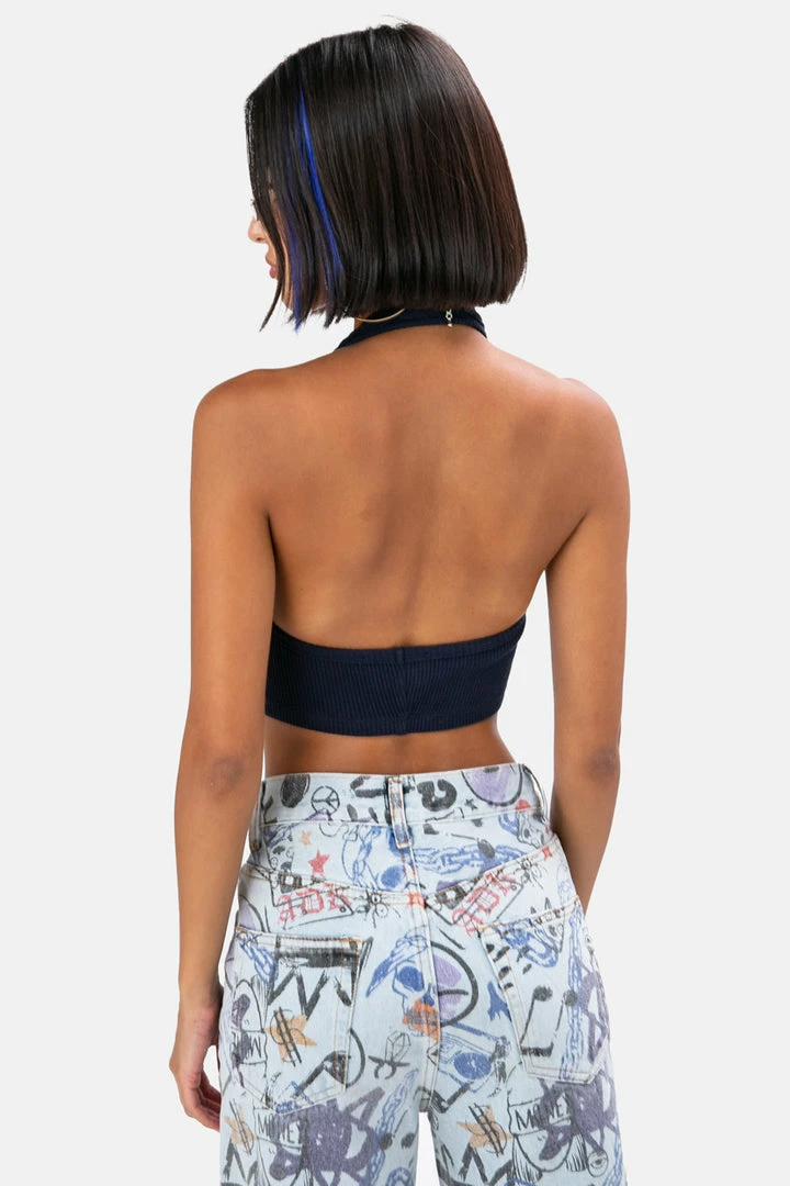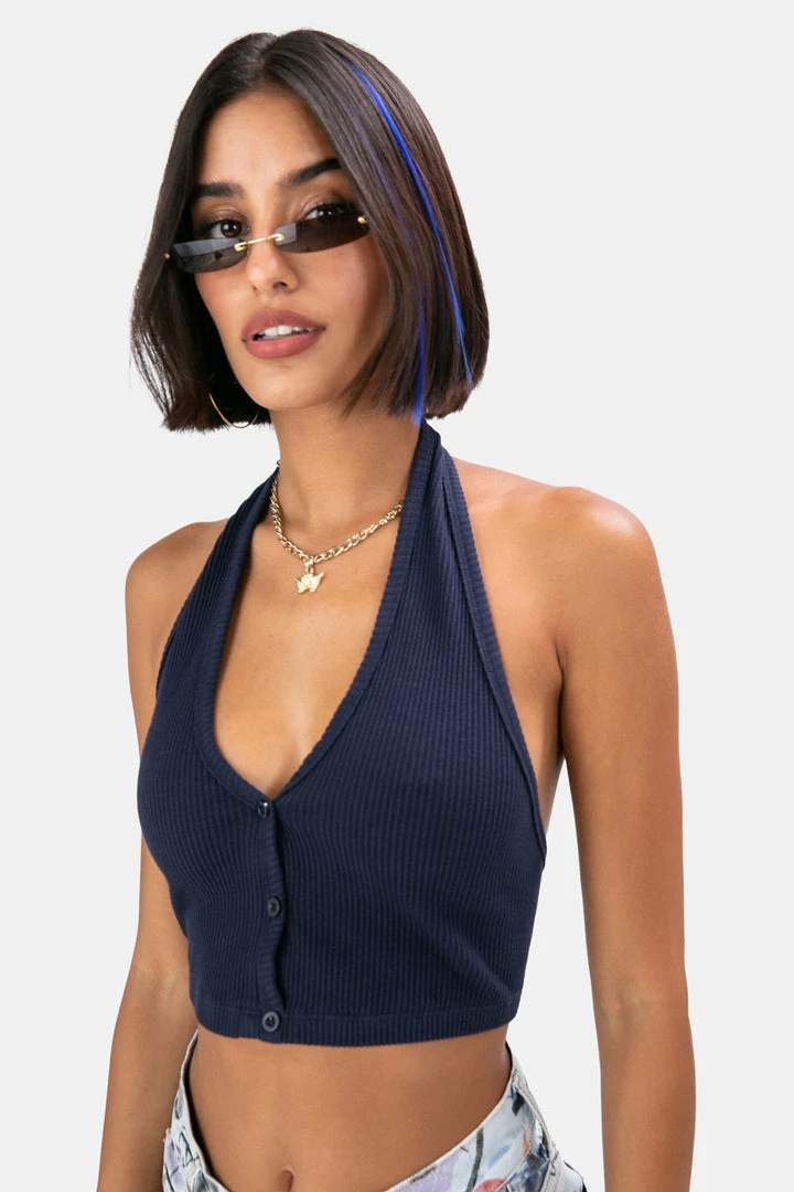 - The top that is on point with any look. Stretchy and ribbed halter crop top with button-up front. Flawless.