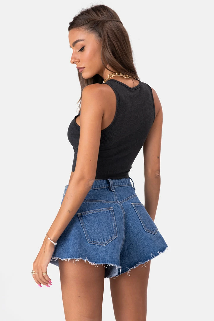 - Biker chic approved. Cropped ribbed tank top with graphic print on the front, scoop neckline with slit detail, low arm cut and raw-cut hem.