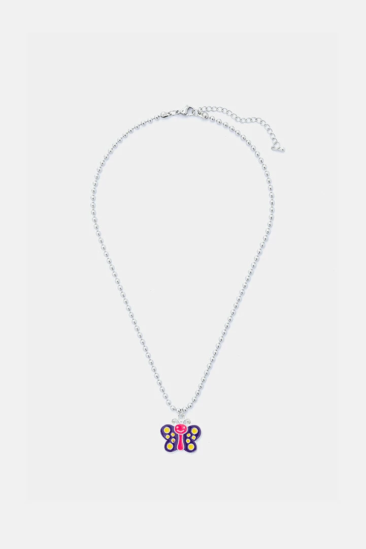 - Wing it. Ball chain necklace in a metallic finish with butterfly-shaped pendant and adjustable lobster clasp closure.