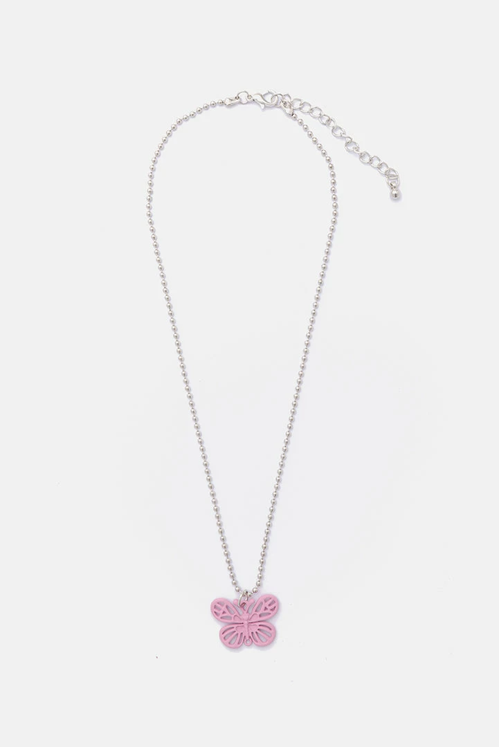 - Spread your wings, babe. Ball chain necklace in a metallic finish with butterfly-shaped pendant and adjustable lobster clasp closure.