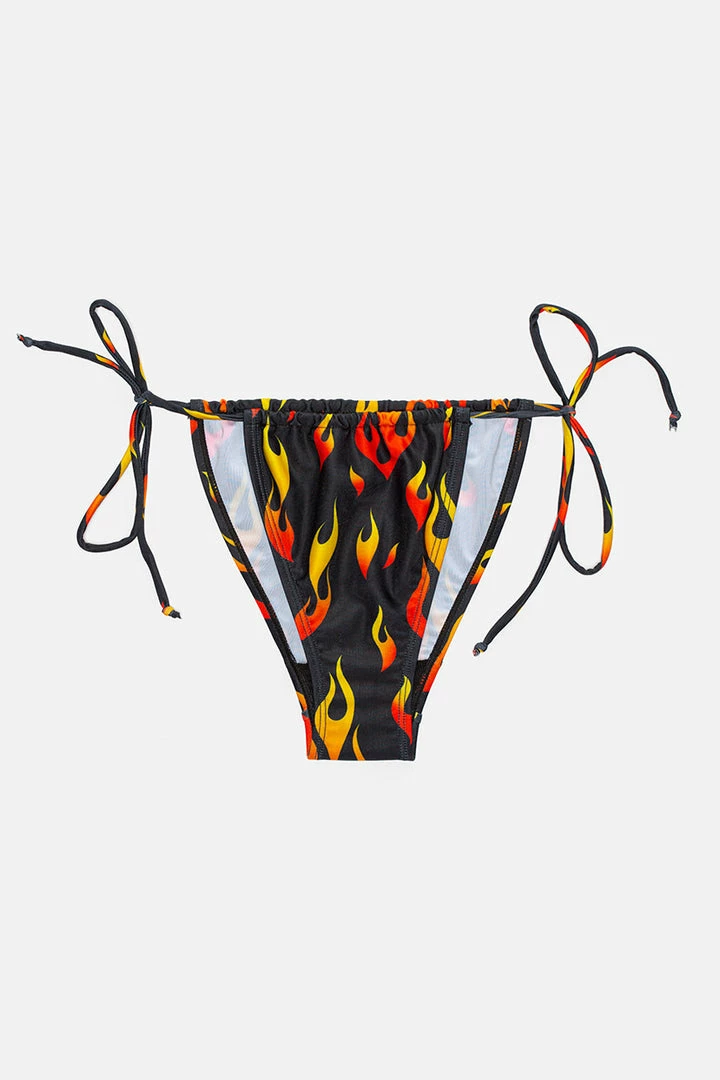 - Ready for this? It’s gonna be FIRE! Brazilian style bikini bottom with the hottest flame print, featuring adjustable side ties and an inner lining to add opaqueness.