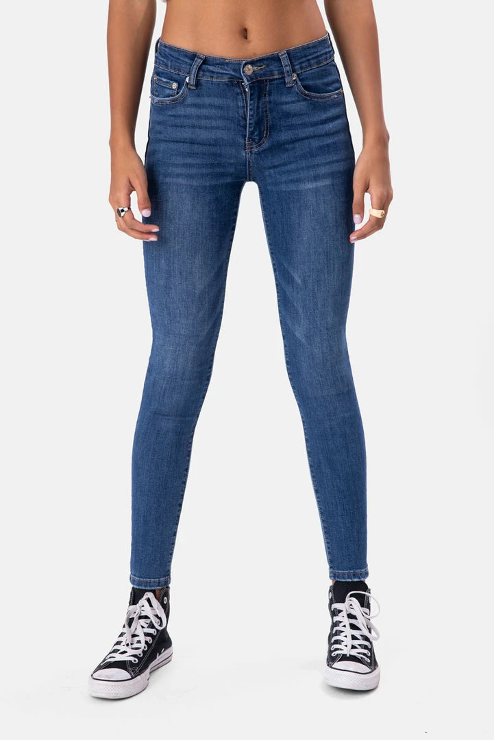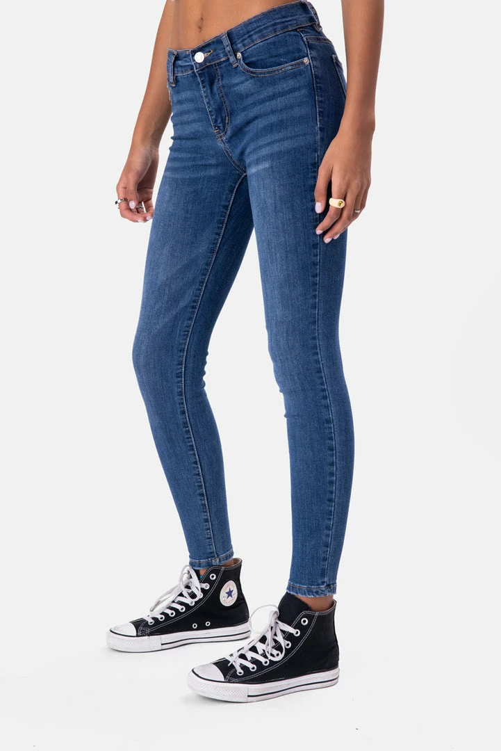 - Hold on tight. Mid-rise, skinny fit jeans with button and zip closure, belt loops and 5-pocket design.