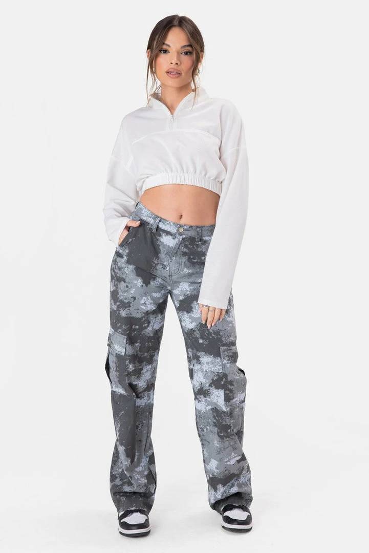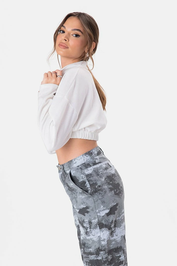 - Making comfy hot. Cropped top with a band collar, elastic waistband, front zip and tonal seam detailing.