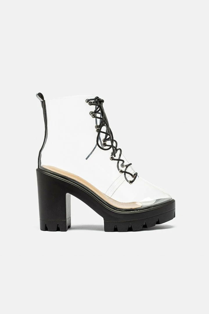- We can see right through you! Transparent lace-up platform boots featuring round toe and chunky sole