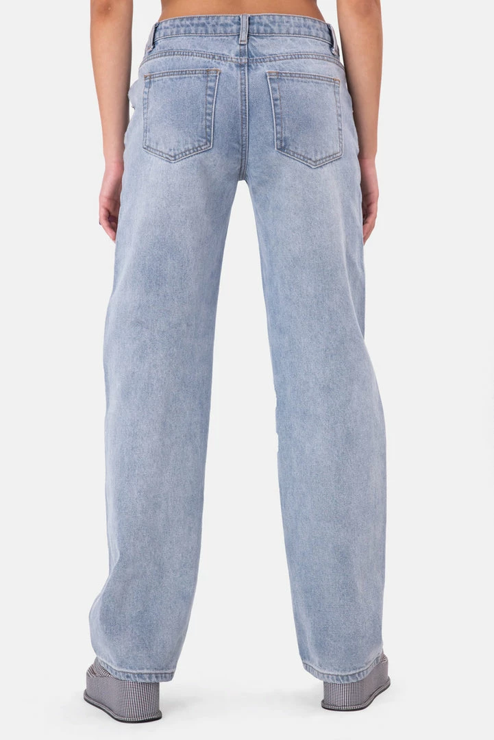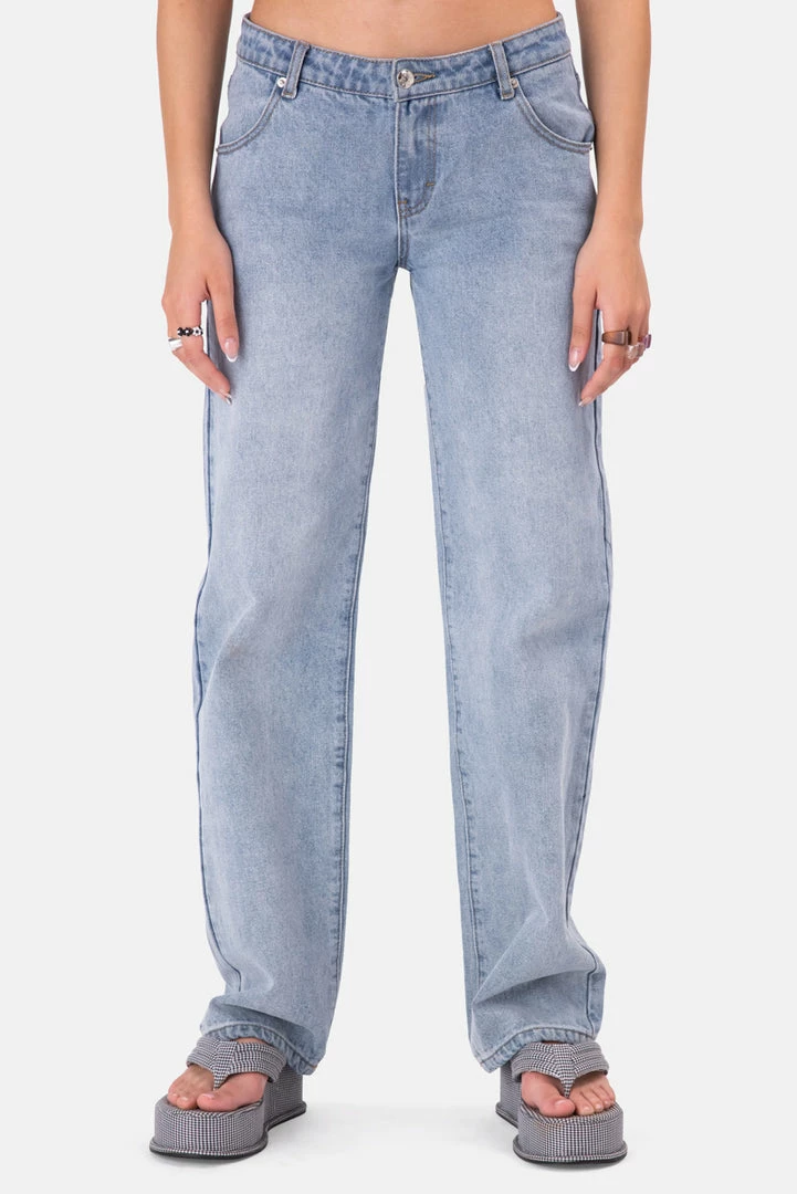 - Y2k vibes 4 eva. Low rise jeans in a wide fit with a button and zip closure, belt loops and a 5 pocket design.