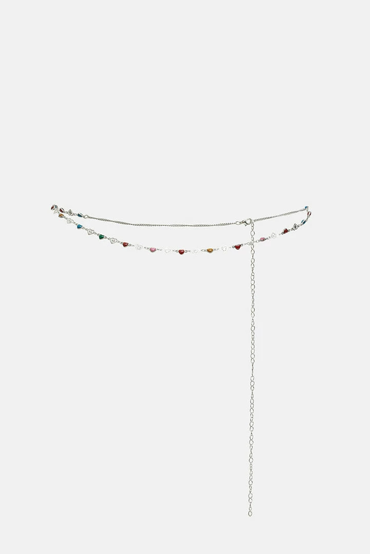 - Love that for you. Metallic belly chain with stylish heart shaped links, colorful faux gems and an adjustable lobster clasp closure.