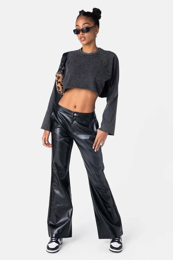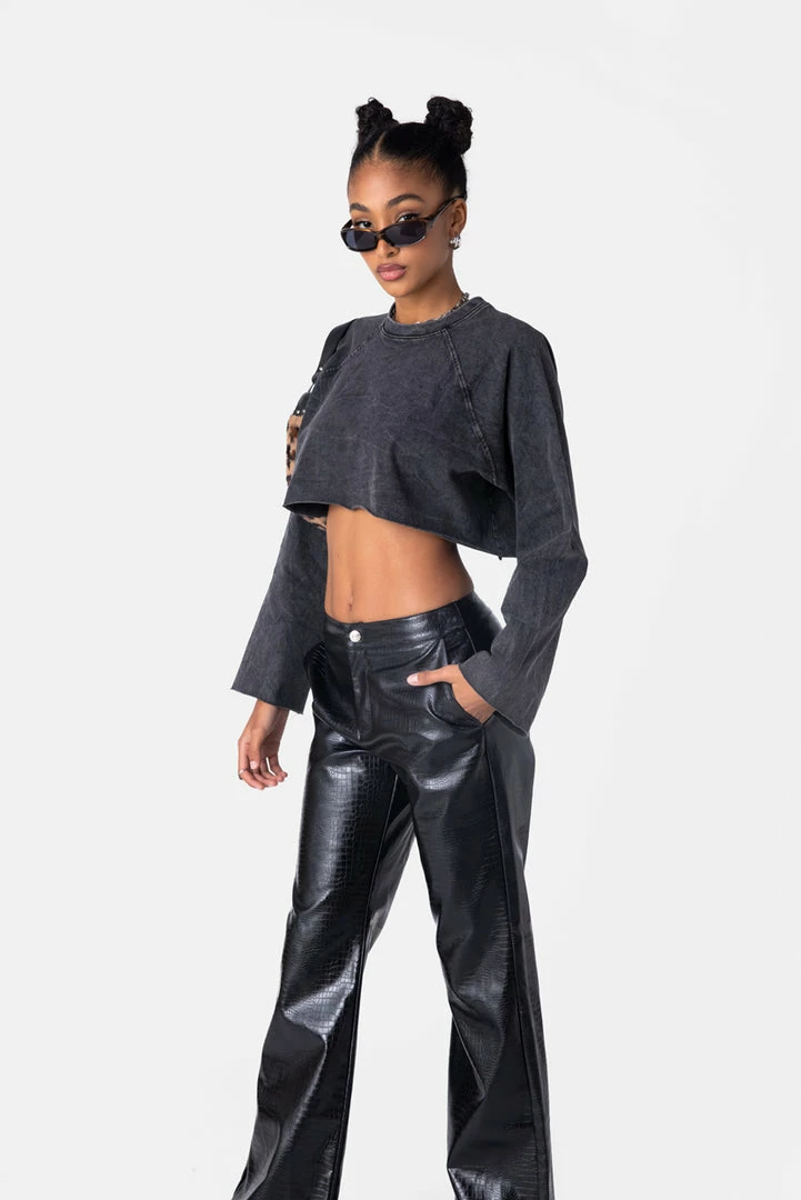 - Wash & learn. Washed out and cropped T-shirt in a relaxed fit with ribbed crewneck, long bell sleeves and raw-cut hem.
