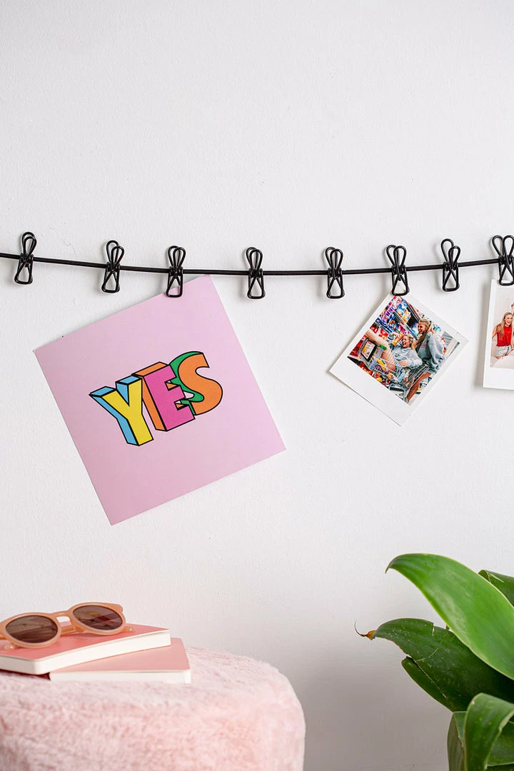 - Get the hang of it. Metal wire, photo clip banner featuring metal clips for displaying photos and postcards.