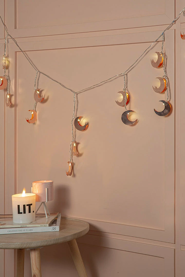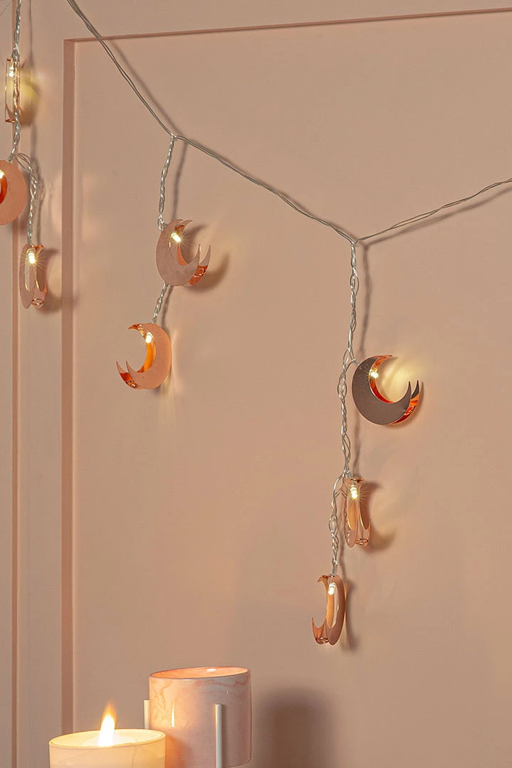 - To the moon & back. Decorative, hanging, fairy string lights with moon-shaped metallic embellishments. FYI ♥ The item comes without batteries.
