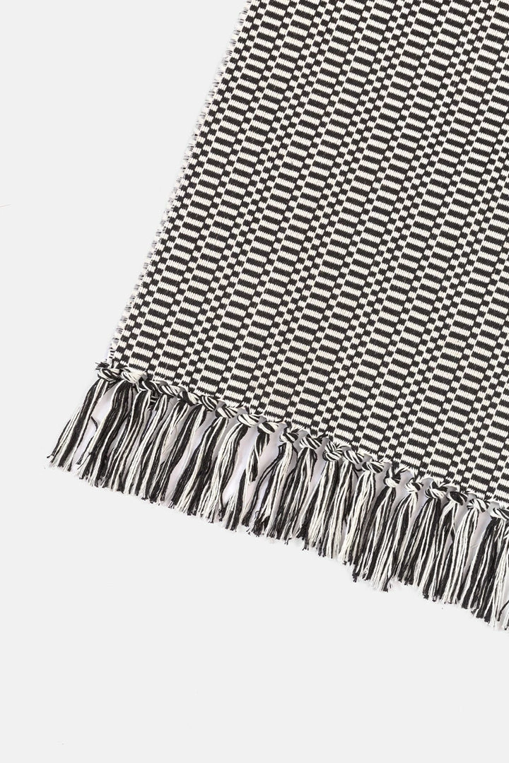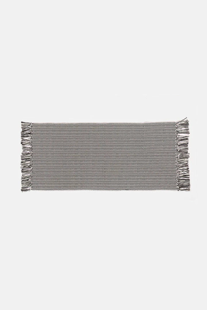 - Snug as a bug in a rug. Rectangular rug in monochromatic pattern all-over with tassel embellishments.