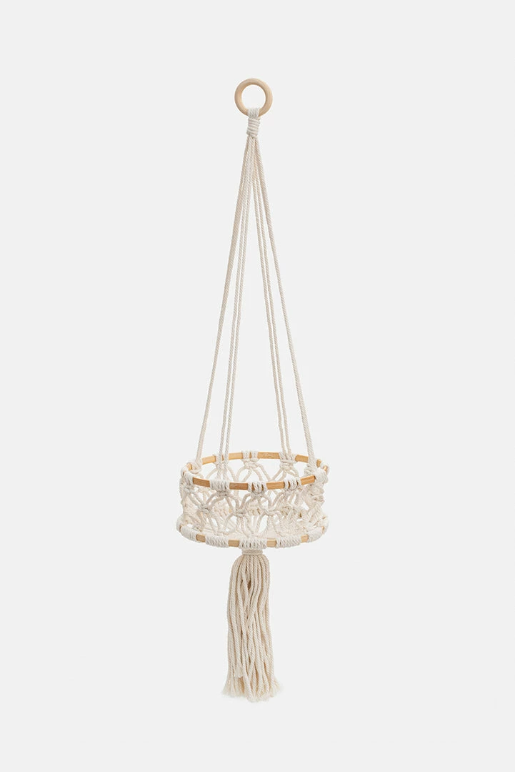 - The boho is still so chic. Stylish plant macramé hanging featuring a round sling, tassel embellishment and top wooden ring.
