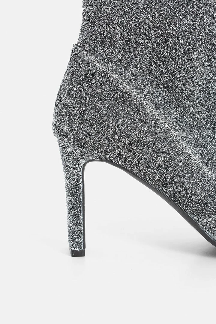 - Get all icy with your shoes game. These sock style booties come in stretchy sparkly fabric with a stiletto heel and a pointy toe. Glam swag, bby.