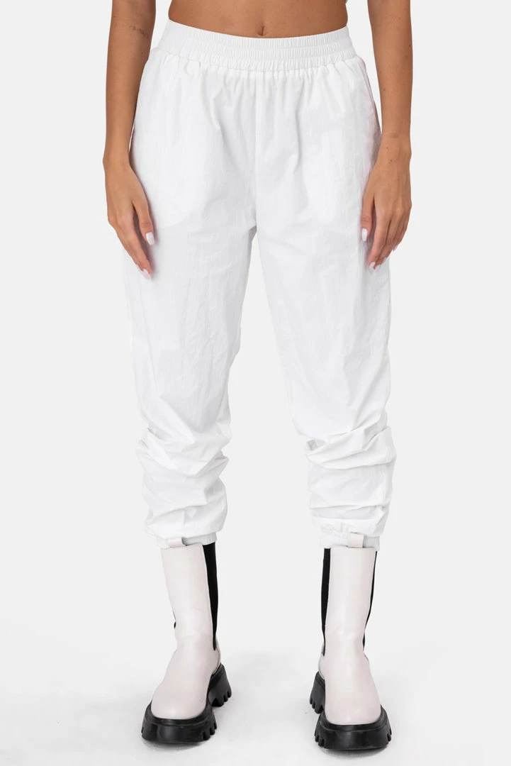 - These are so cool! High waisted nylon sweatpants with an elastic waistband, diagonal front pockets, fitted cuffs and inner lining. Ice, ice bby.