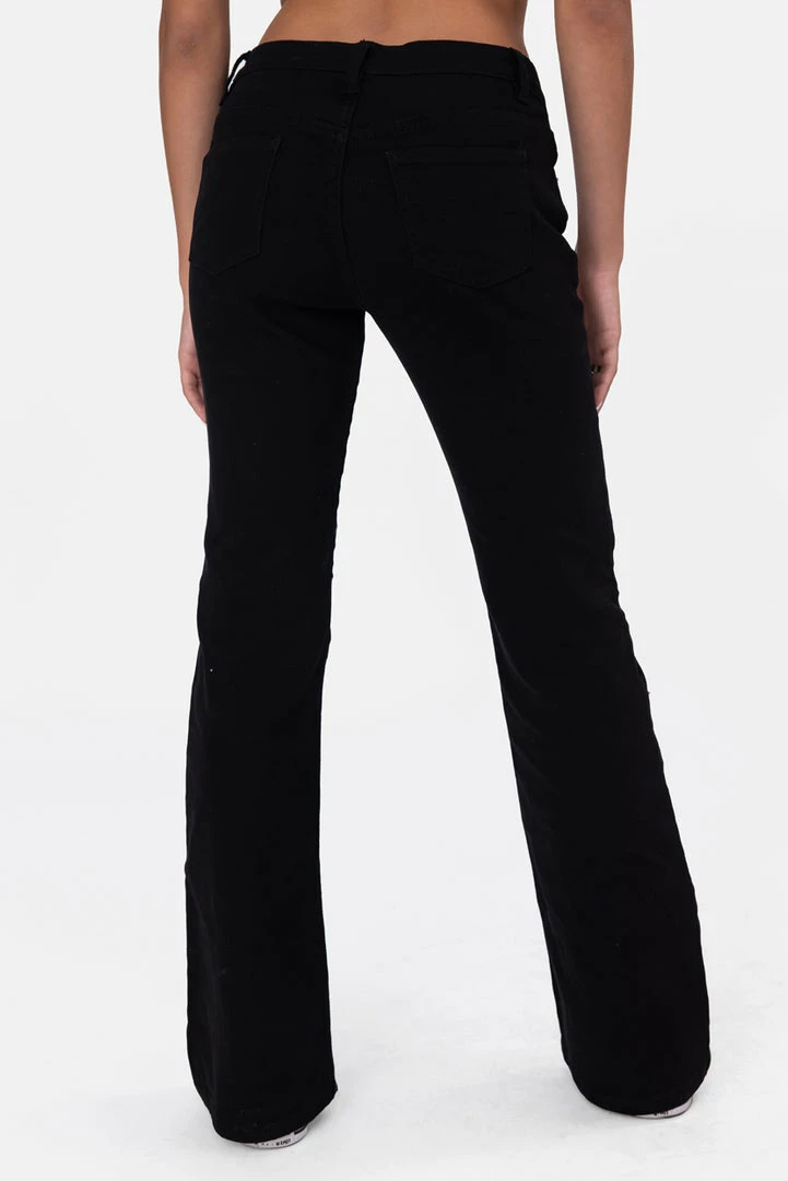 - Hello, sunshine. Stretchy flared jeans in low-rise fit featuring graphic print on the front, button and zip closure, 5-pocket design and belt loops.