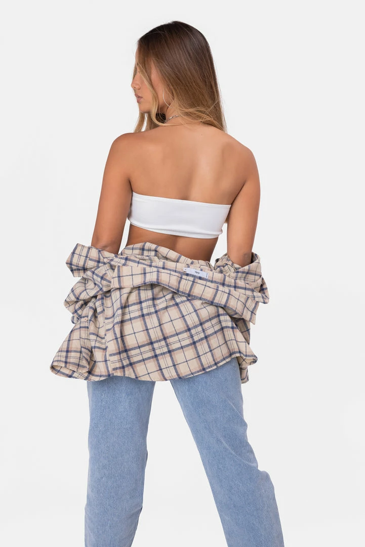 - A total must-have. Stretchy bandeau tube top with an elastic outline.