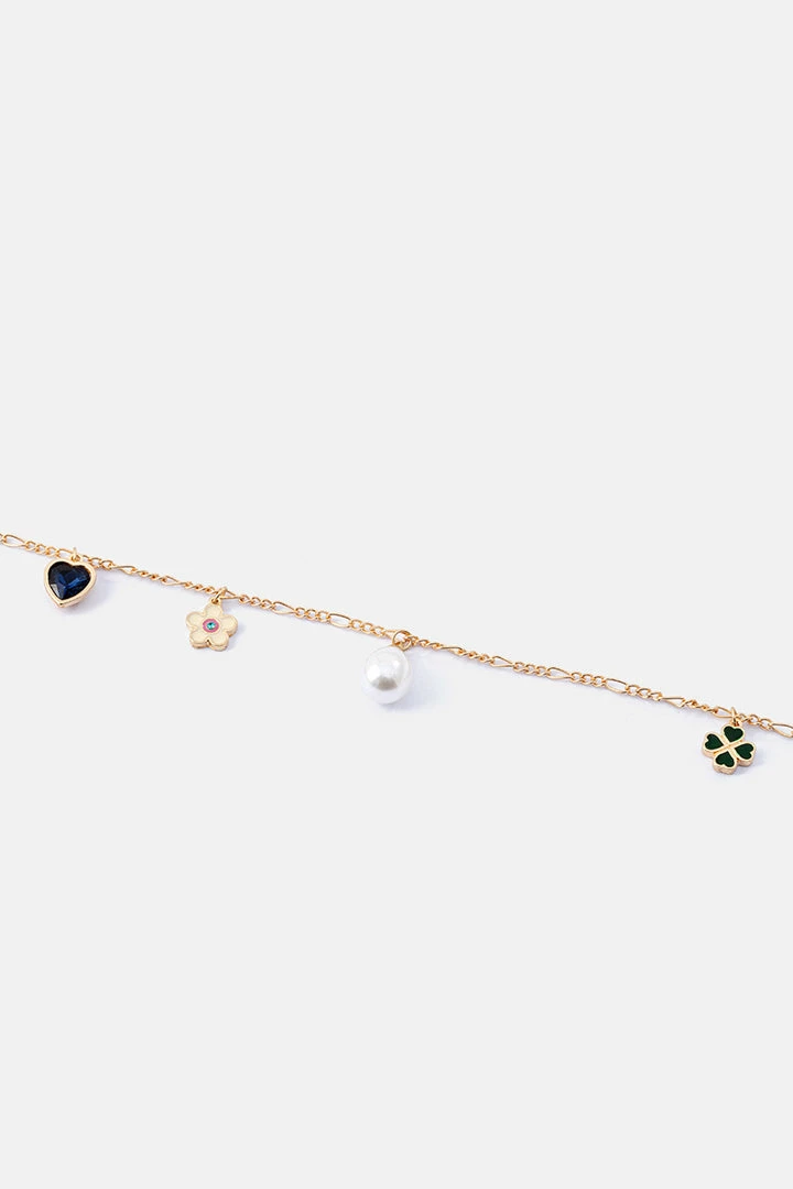 - Mixing it up a bit. Figaro style chain in a metallic finish with super-cute mixed design charms and an adjustable lobster clasp closure.
