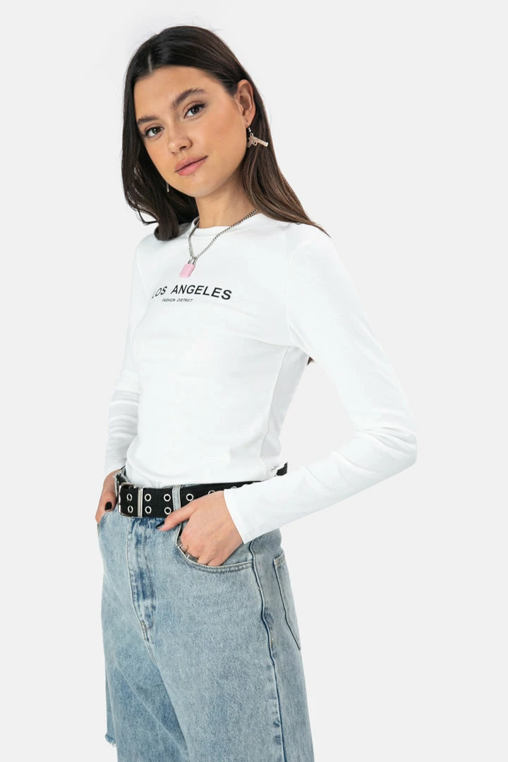 - Take me to the City of Angels, baby! Long sleeve t-shirt featuring Los Angeles graphic print typography in front