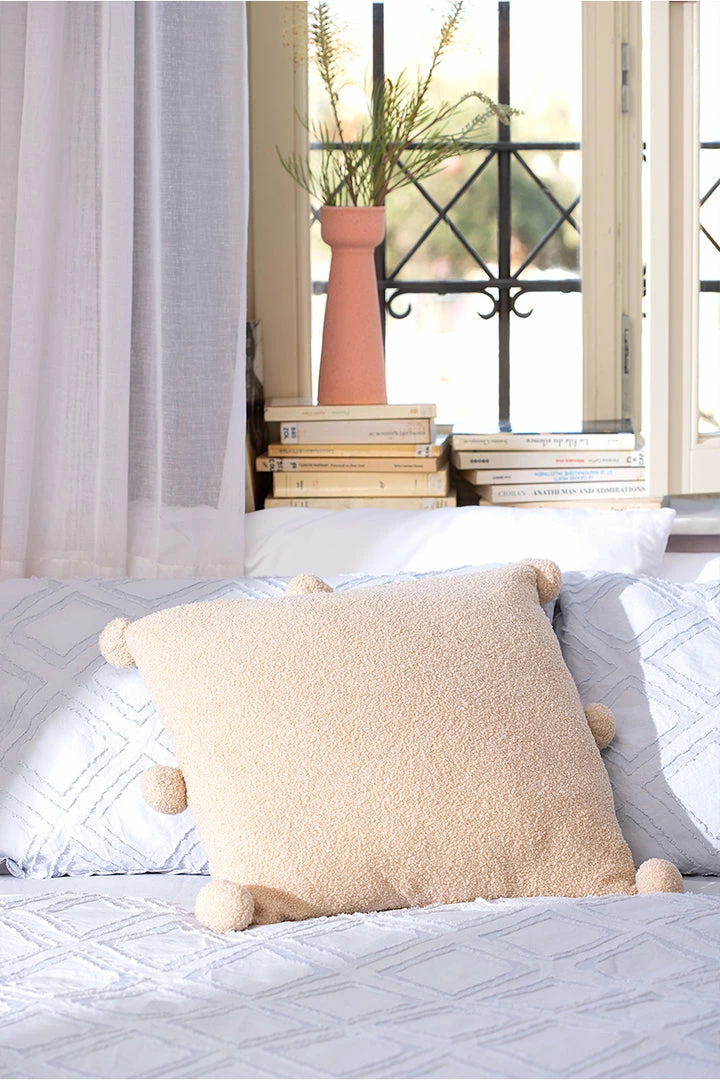 - Master of texture. Square throw pillow cover in super fuzzy teddy with tassel embellishments.