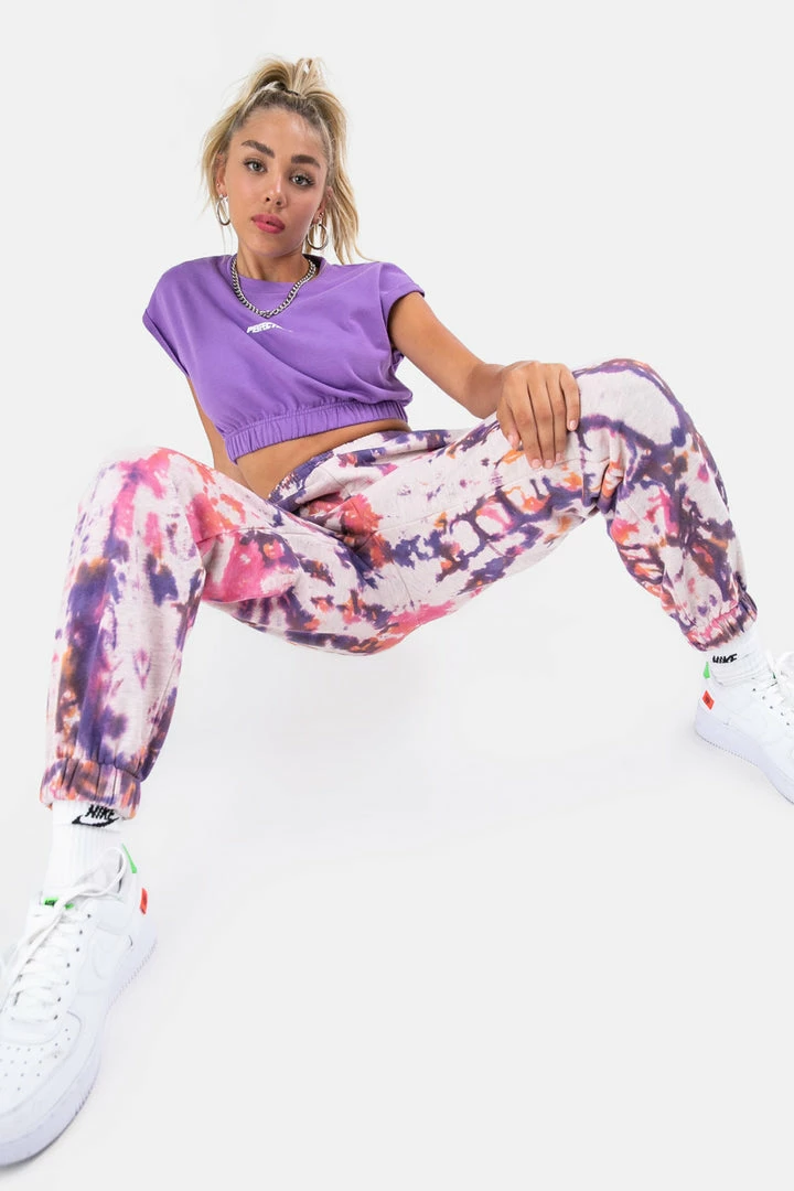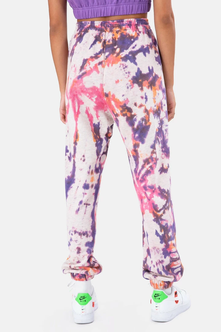 - Let’s never let tie-dye go out of style, k? Super-fun jersey sweatpants in all-over tie-dye print featuring an elastic waistband, side pockets and fitted cuffs. Groovy.